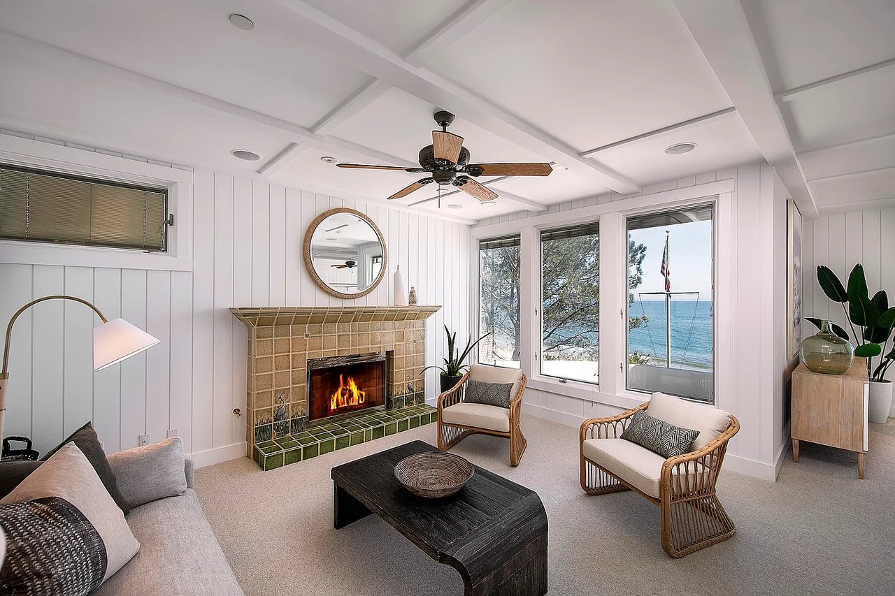 The main living area features an open floor plan with 10ft ceilings, sparkling ocean views, a grand fireplace and an enclosed sunroom with floor-to-ceiling ocean view windows. It's the perfect place to relax and experience the amazing sunsets on the ocean. The chef's kitchen and dining area are sun-drenched with floor-to-ceiling ocean view windows, professional appliances and a large pantry.